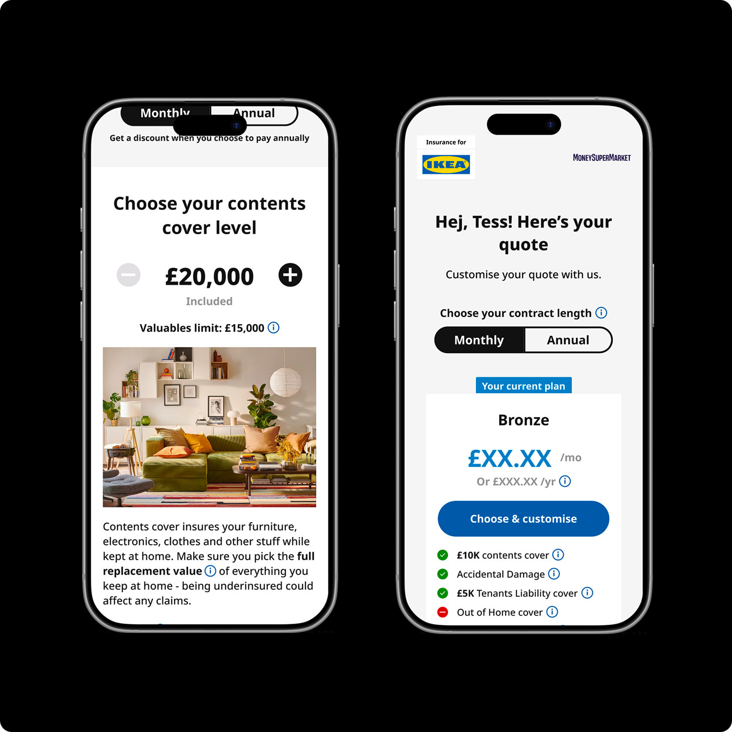 Led the end-to-end design of a white-label home insurance product that gives millions of IKEA shoppers a seamless path to coverage within a brand they already trust.