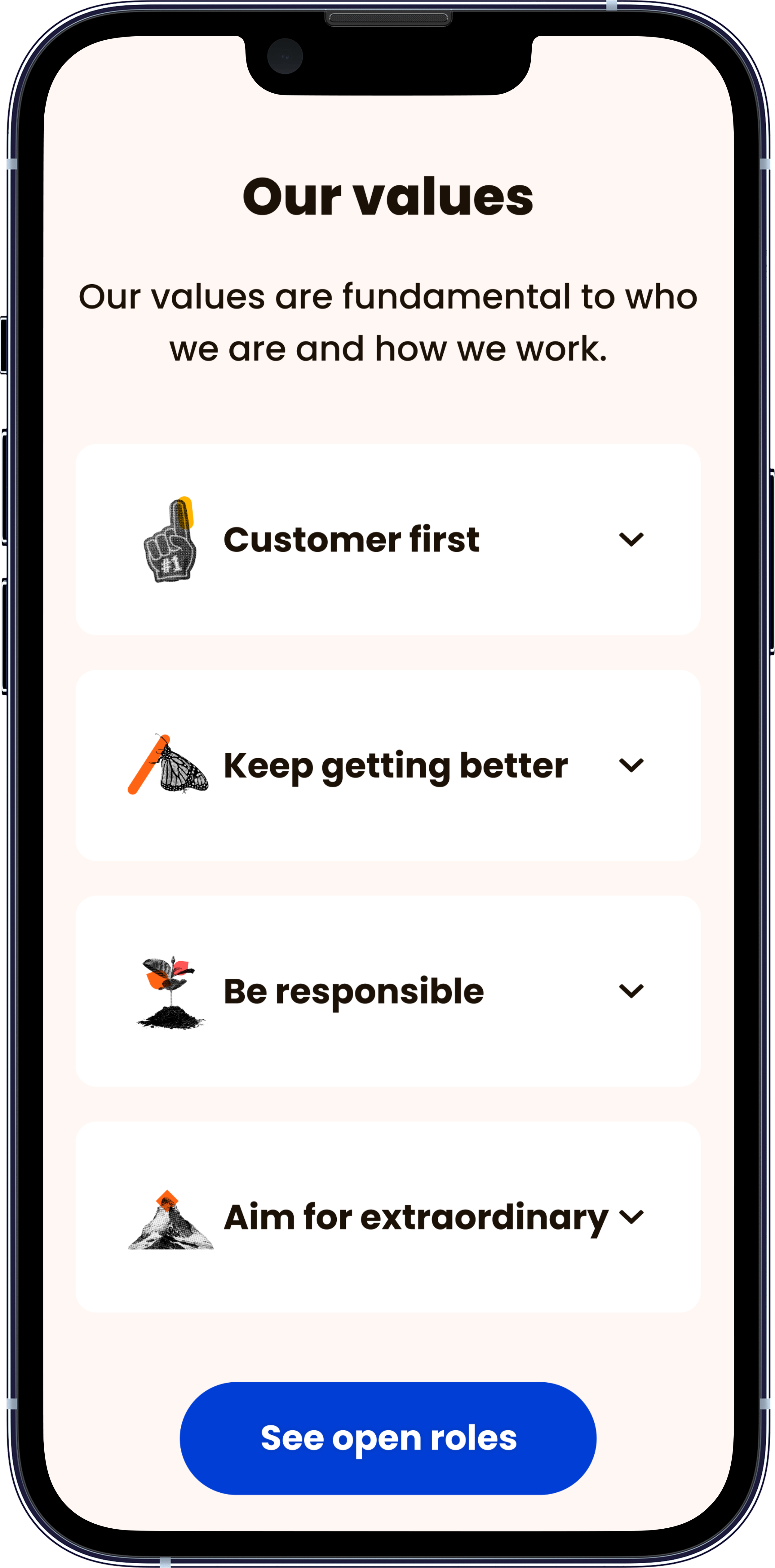 Before rolling out across the full brand, we redesigned three key pages (Homepage, Careers, and About Us) to pressure-test the identity in context. We also ensured the new branding worked across existing customer journeys and touchpoints such as the account management space. These designs went through full internal review with the team, CEO, and compliance team before anything moved forward.